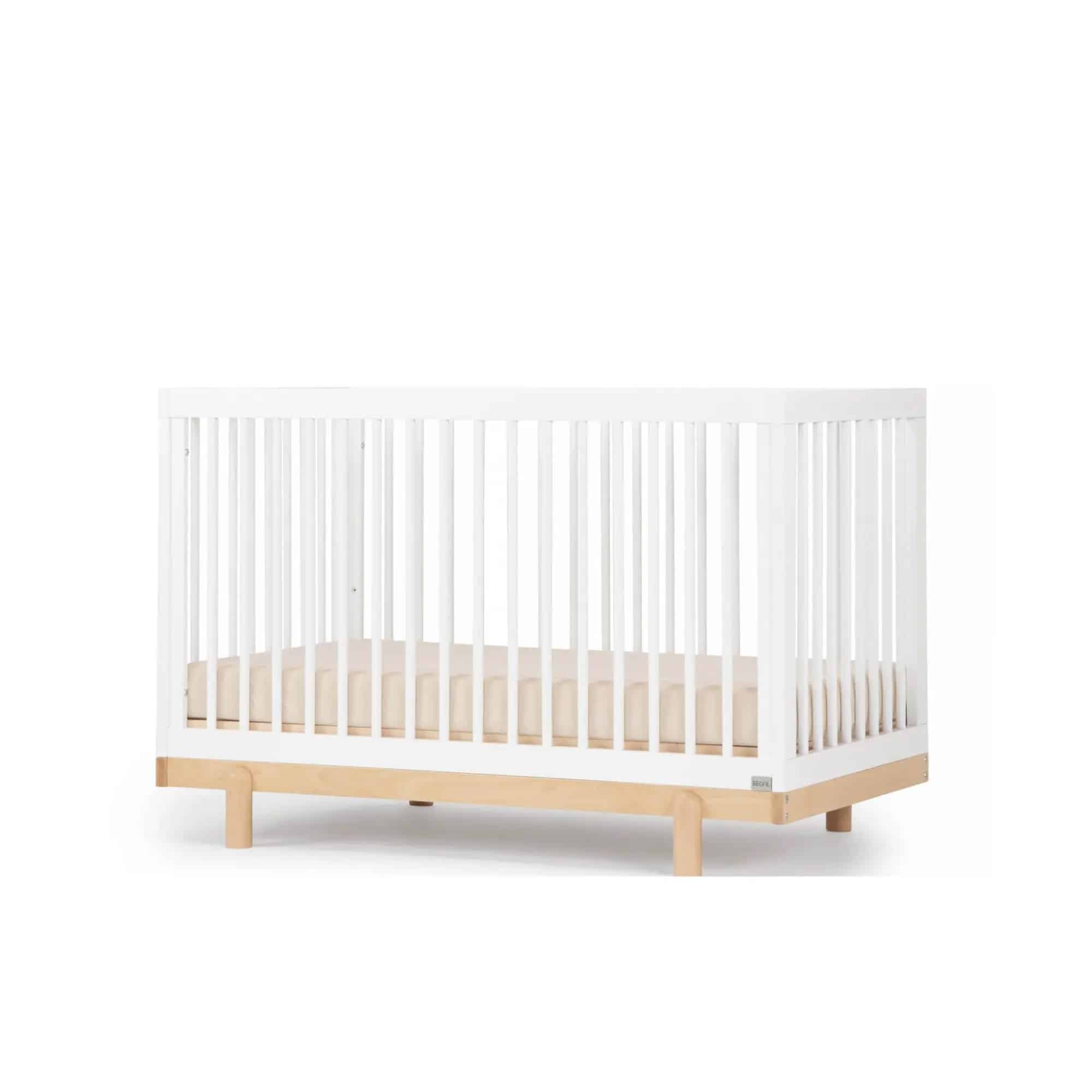המיטה זמינה בשלושה צבעים: טבעי, לבן-טבעי, אגוז – ומתאימה בקלות לכל סגנון עיצוב בחדר התינוק.