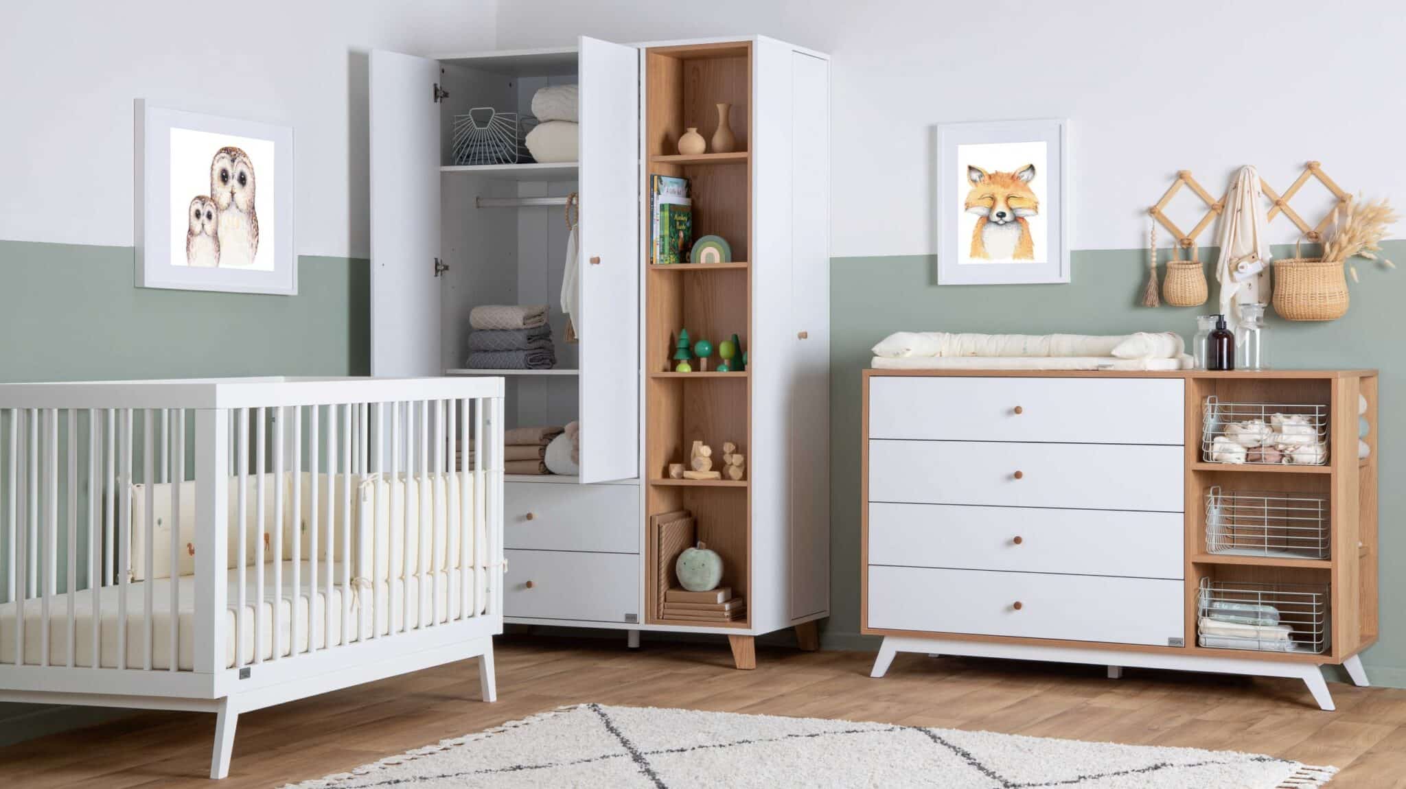 ארון מיקה מצליח לשלב בין עיצוב מינימליסטי נקי לבין פרקטיקה חכמה. הוא כולל שילוב של ארון סגור, ספרייה פתוחה עם 5 מדפים, ותא אחסון נוסף בדופן הארון. העיצוב הקלאסי עם הקווים הנקיים והידיות הלבנות מעניקים לו מראה עכשווי ועל-זמני, תוך שמירה על תחושת נינוחות ואוורור בחדר. הודות לחלוקה הפנימית הגמישה ניתן להתאים אותו לצרכים המתפתחים של התינוק וההורים.