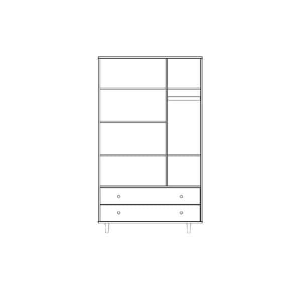 מידות כלליות: רוחב 120 ס"מ, עומק 60 ס"מ, גובה 203.5 ס"מ.