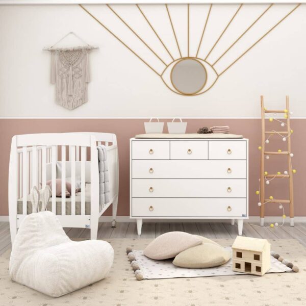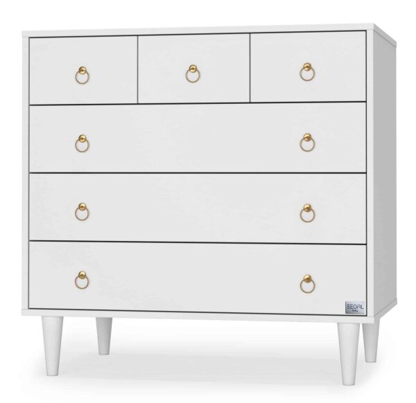 המבנה הפונקציונאלי של המגירות מאפשר סדר וארגון נוח של בגדי התינוק, מוצרי החתלה וציוד יומיומי נוסף. בזכות איכות החומרים והקפדה על עמידות, השידה מבטיחה שימוש בטוח ונוח לאורך שנים.
