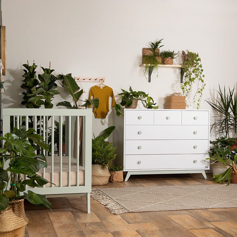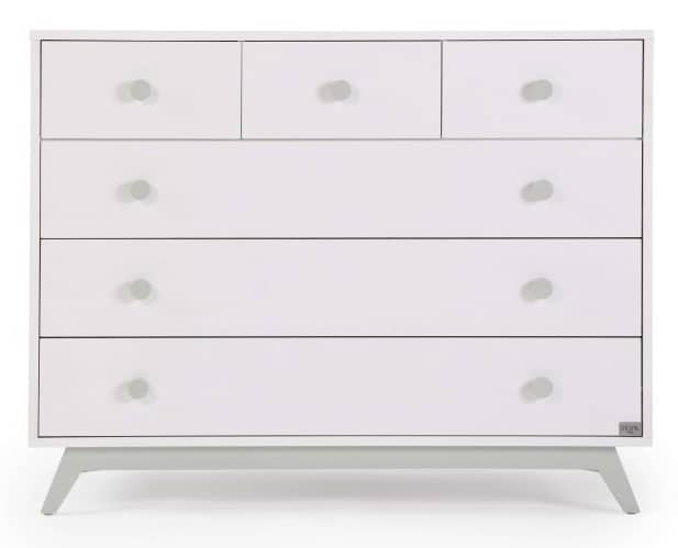 שידת החתלה רחבה לתינוק, ברוחב 120 ס"מ, בעיצוב נקי עם קווים ישרים. השידה משלבת פונקציונאליות עם מראה מודרני ומעניקה יציבות ובטיחות לאורך שנים.
